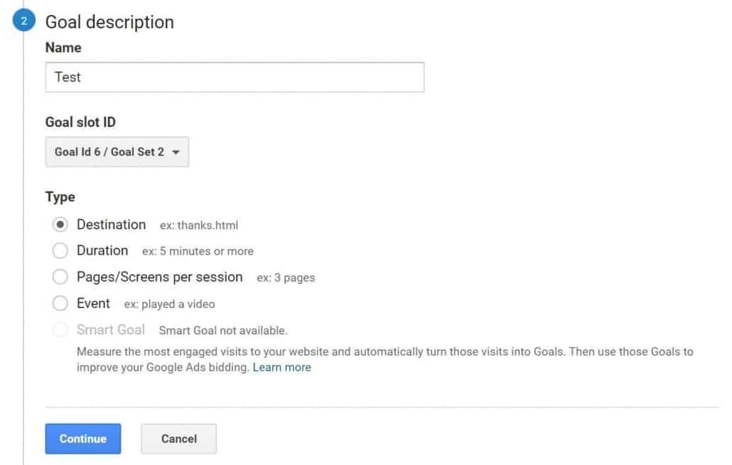 Goals are the ones that tell GA when there’s an important event on the website. For example, if a visitor makes a purchase or submits their contact details, they should end up on a Thank You or Confirmation page.